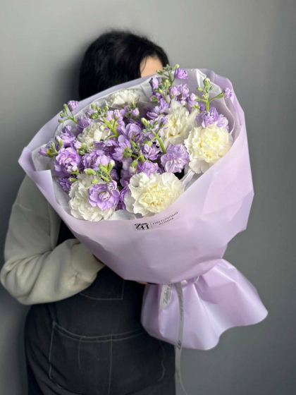 Букет с маттиолой и диантусами