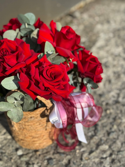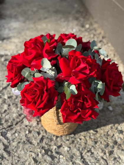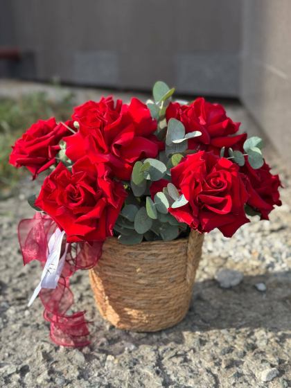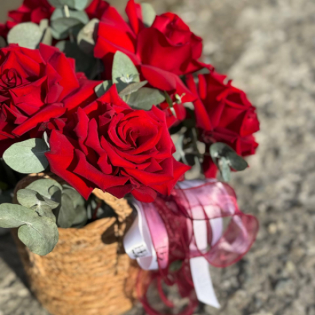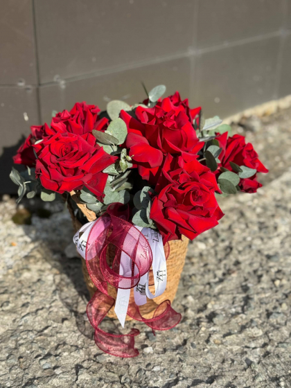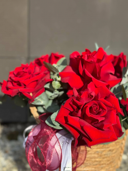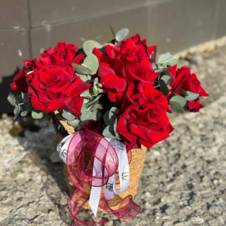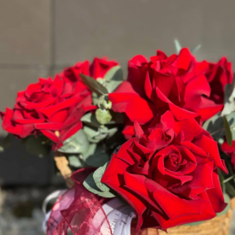 Композиция в корзине с французскими розами