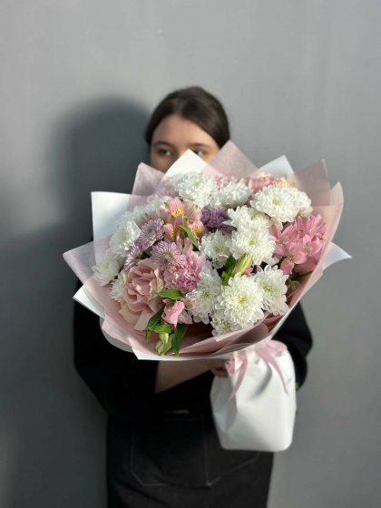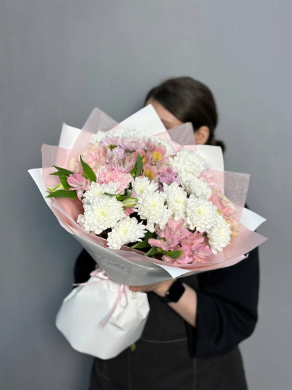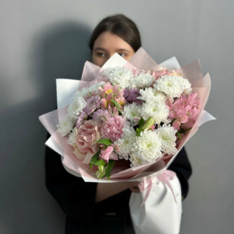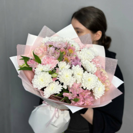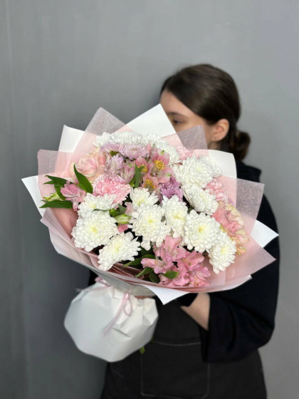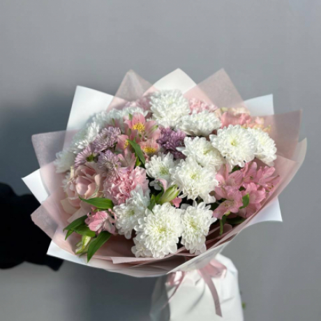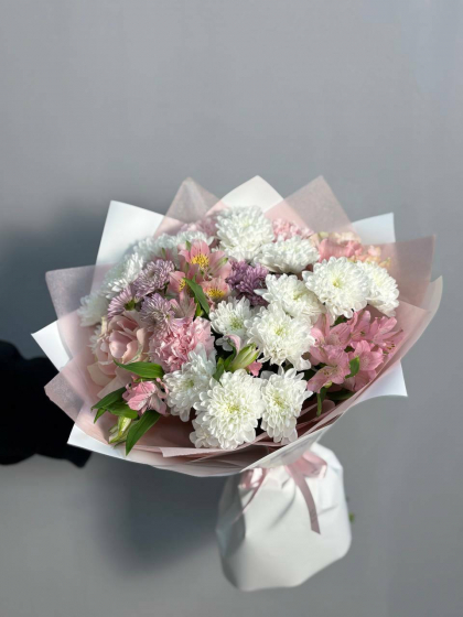 Букет с хризантемой и альстромерией