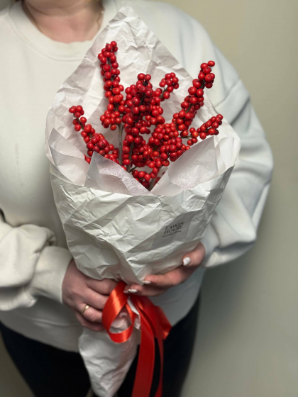 Подарите себе или близким банч из 3 веток илекса — и пусть его алые ягоды станут символом радости, уюта и ожидания зимних чудес. Этот простой, но выразительный акцент поможет создать атмосферу тепла и праздника в любом уголке дома.