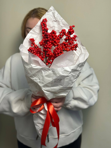 Банч из 3 веток илекса идеально подойдёт для украшения дома, офиса или в качестве небольшого, но эффектного подарка. Он наполнит пространство праздничным настроением и добавит естественной элегантности.